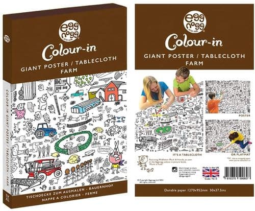 EggNogg Colour-in Tablecloth Poster Playmat This giant poster/ tablecloth is packed full of different patterns, animals, and lots more to colour in. Is made from durable paper. When unfolded, measures approx. 1270mm x 952mm or 50ins x 13.5ins.